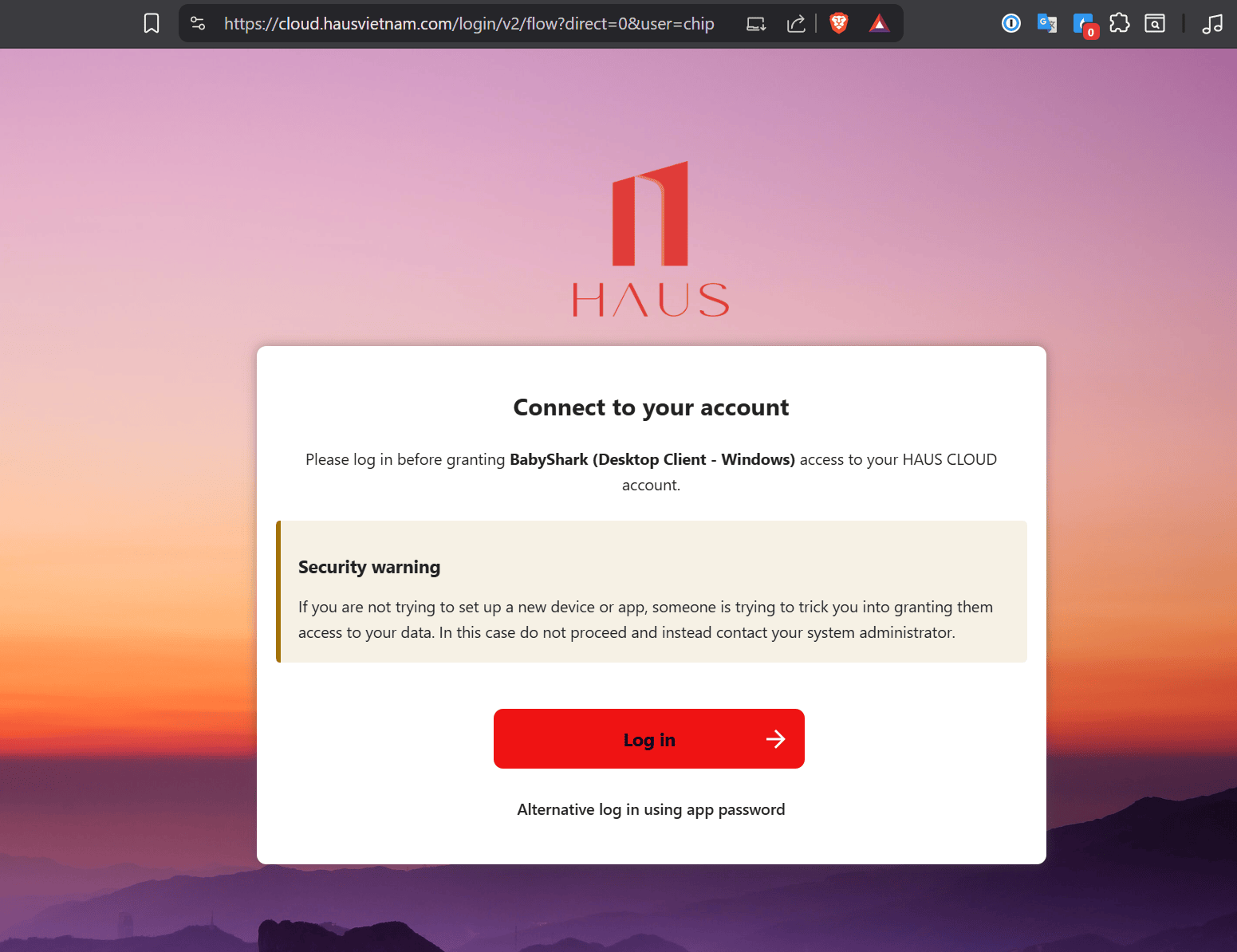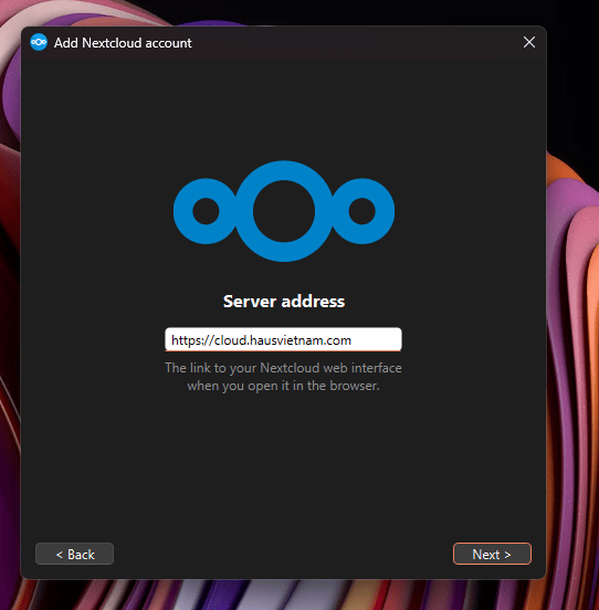 Bước 1: Cài đặt : https://github.com/nextcloud-releases/desktop/releases/download/v3.16.6/Nextcloud-3.16.6-x64.msi