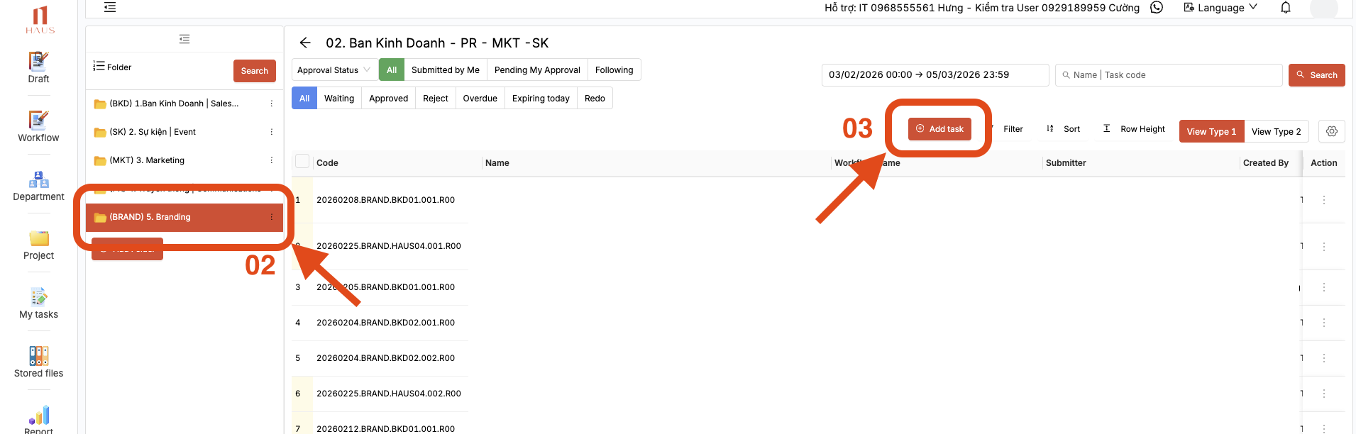 3. Click Department > 02. Ban Kinh Doanh - PR - MKT -SK or open quick link