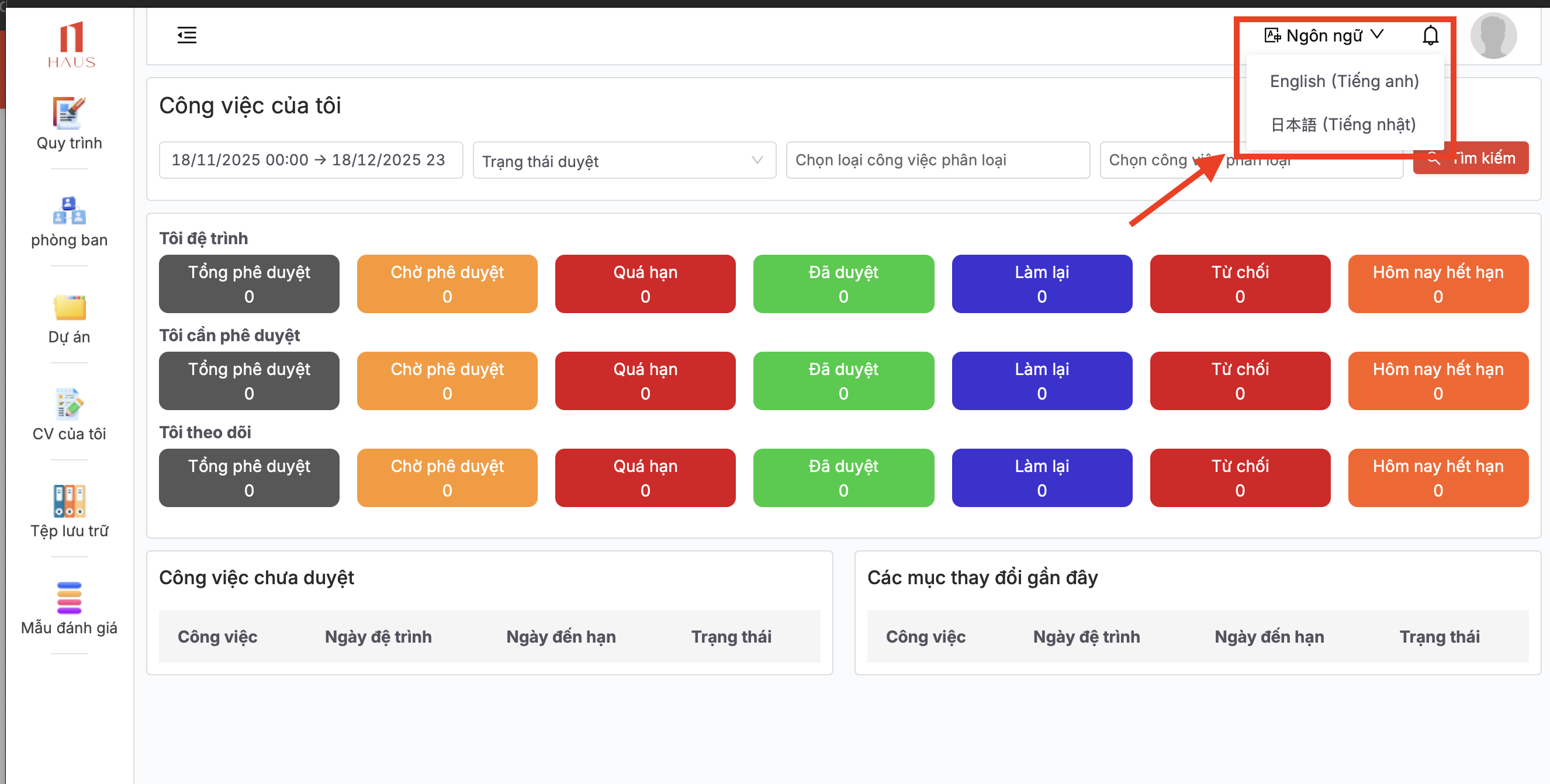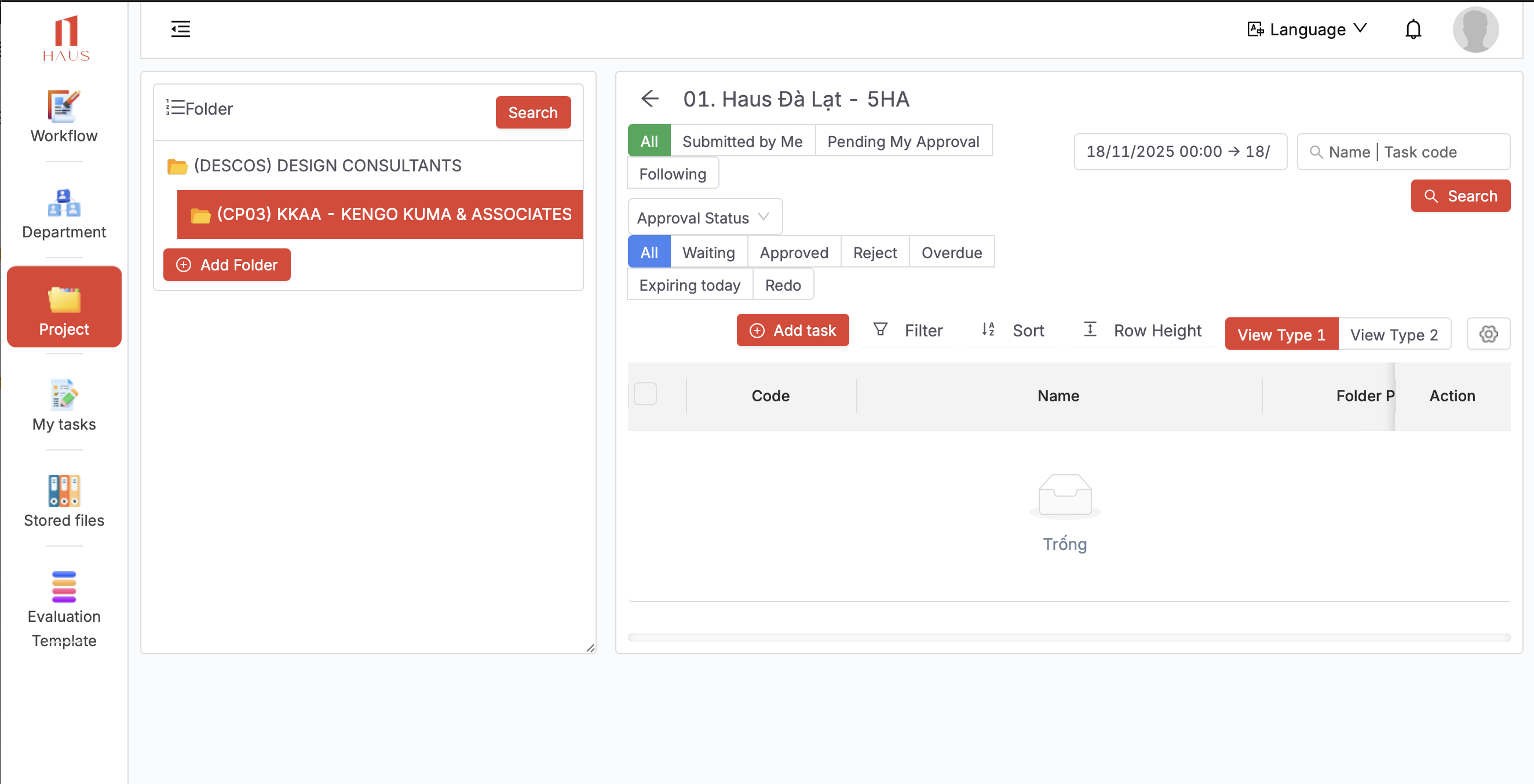 3. Click Project > HAUS DA LAT or open quick link https://qlda.hausvietnam.com/cong-viec/cong-viec-du-an/LAD.DL.HAUSDALAT-5HA?id=e0f474b6-c1c4-43e8-a24a-067414fa3ee8